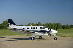The original Model 90 was powered by a Pratt & Whitney PT6. The PT6A-6 did not have a reverse-pitch prop. Over time, both the engine and the powerplant grew. The A90 came along in 1966 with reverse pitch props, increased cabin pressure (3.1 psi to 4.6 psi), the PT6A-20 engine, and a gross weight increase of 300 pounds. In 1968, the B90 brought an increase in wingspan, recontoured rear fuselage, balanced controls, and a 350-pound gross weight increase. The C90 was next to be introduced in 1971, with a new cabin pressurization system that used bleed air from the engines (which increased cabin noise and reduced engine power). In 1976, the C90 received a new engine, the PT6A-21. Another increase in cabin pressure (to 5 psi), a 15-knot cruise speed increase (due to an increase in the interstage turbine temperature [ITT]), a stronger horizontal stabilizer, and a new cabin door (borrowed from the King Air 200) was introduced in 1982 on the C90-1. The C90A brought redesigned engine cowlings that reduced drag and boosted ram airflow to the engines (resulting in a 12-knot increase in cruise speed), an electrical landing gear system, and a rudder boost system that eased the pilot work load during single-engine operations. Also included on this model (due to concerns about wing strength and cracking wing bolts) was a bonded spar cap, running the length of the wing using shear fittings instead of bolts. The E90 featured a PT6A-28 engine in 1972, and in 1979, the F90 appeared with a T-tail, 750-shp engines, and a 600-pound increase in useful load. The PT6A-135A engine was placed in redesigned cowls, which once more decreased drag and increased ram air recovery, allowing for an increased cruise speed of 15 knots and improved climb/takeoff distance in the F90-1 in 1983. Due to extremely high overhaul costs and difficulty in locating parts, beware when purchasing a King Air with PT6A-6 and -20 engines. Some mechanics even refuse to overhaul the PTA6-6 engines. Parts aren’t generally hard to find for the rest of the King Airs, but they are expensive. A 1,250-hour hot section inspection is recommended. The King Air typically has the club seating arrangement, and a fifth "side-facing" seat is available for the back. Some of the modifications available for the King Air include four-blade Hartzell props, dual aft body strakes, main gear landing doors, wing lockers, and exhaust stack fairings.